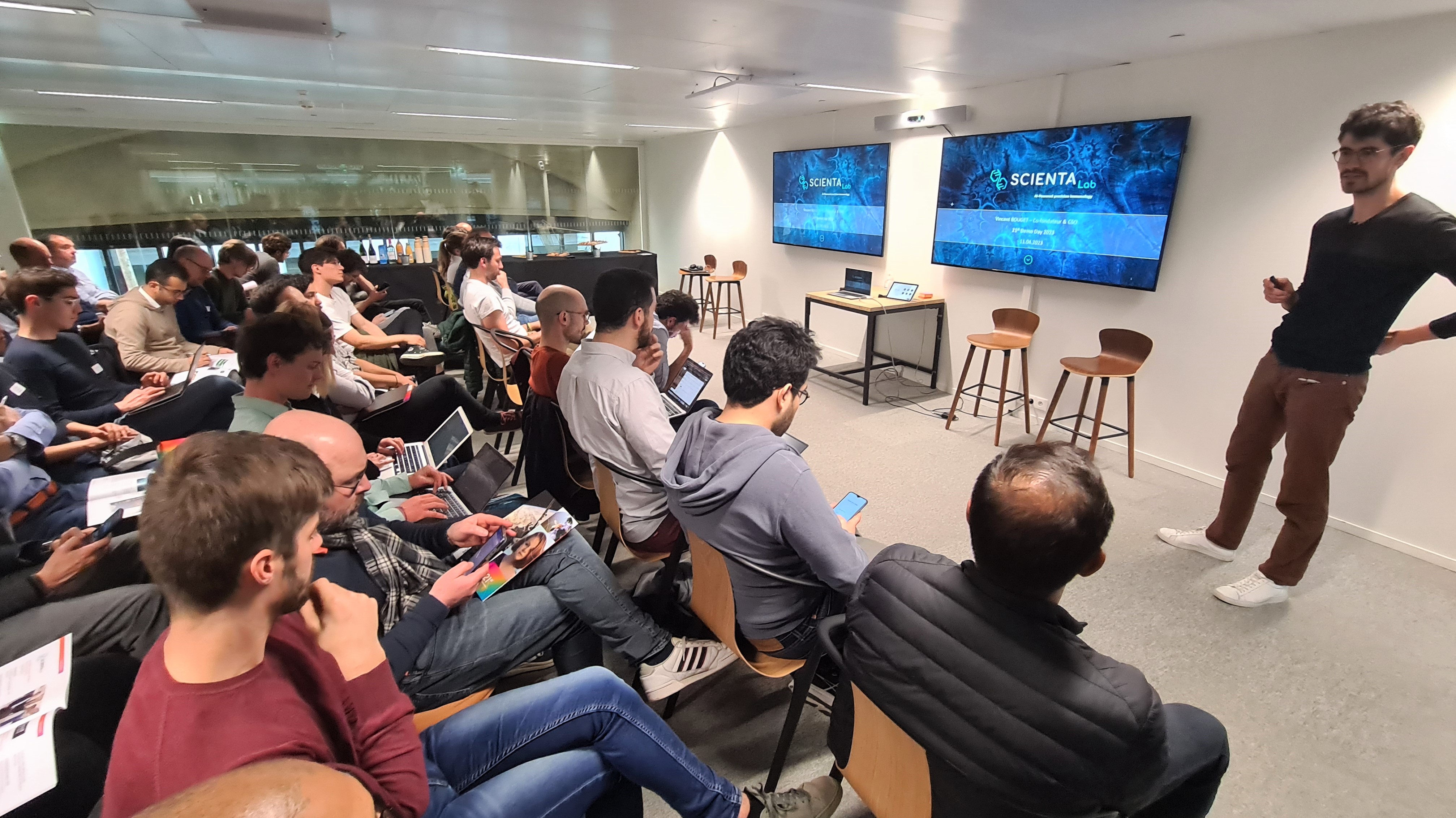 À cette occasion, 16 de nos startups étaient invitées à pitcher leur projet devant plus de 60 invités, dont 16 fonds d’investissements et business angels, des grands comptes partenaires de STATION F, ainsi que des alumni CentraleSupélec.