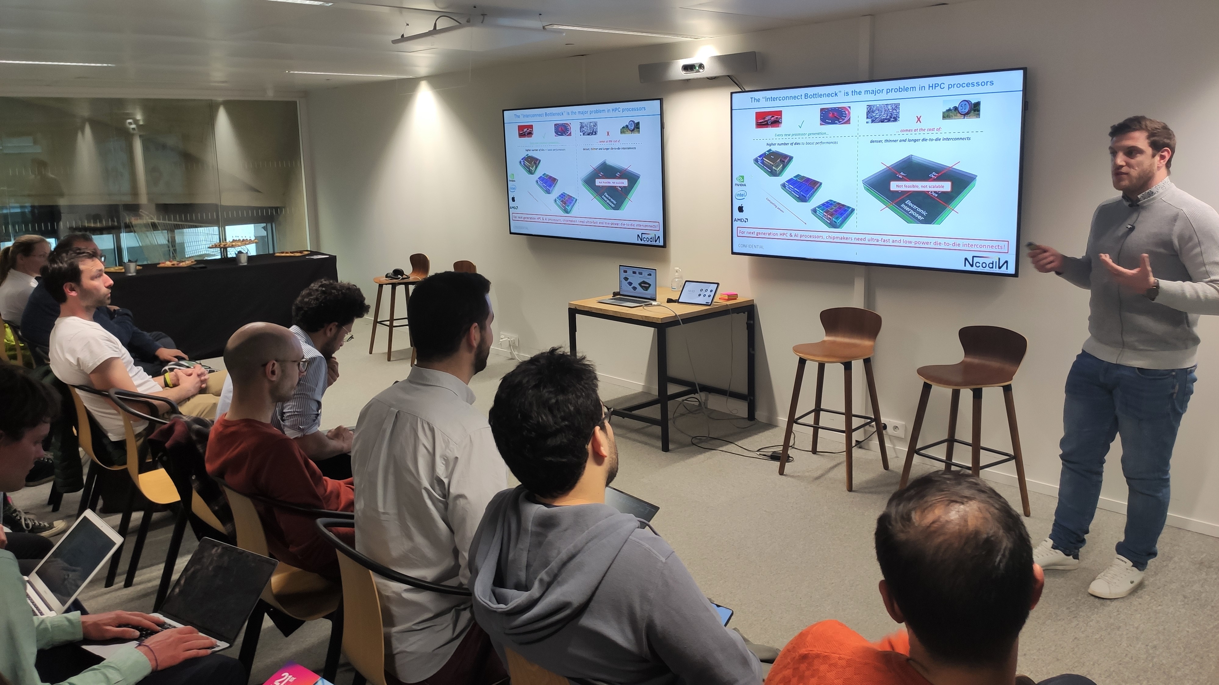 Ncodin permettra à ses clients de déclencher la puissance de calcul de leurs processeurs de nouvelle génération à travers la lumière. Ncodin propose de remplacer les interconnexions actuelles par le développement d’une puce nanophotonique révolutionnaire, qui gérera le trafic de données dans les processeurs dédiés au calcul haute performance et à l'intelligence artificielle, et permettra à ses clients de répondre au futur besoin en calcul.